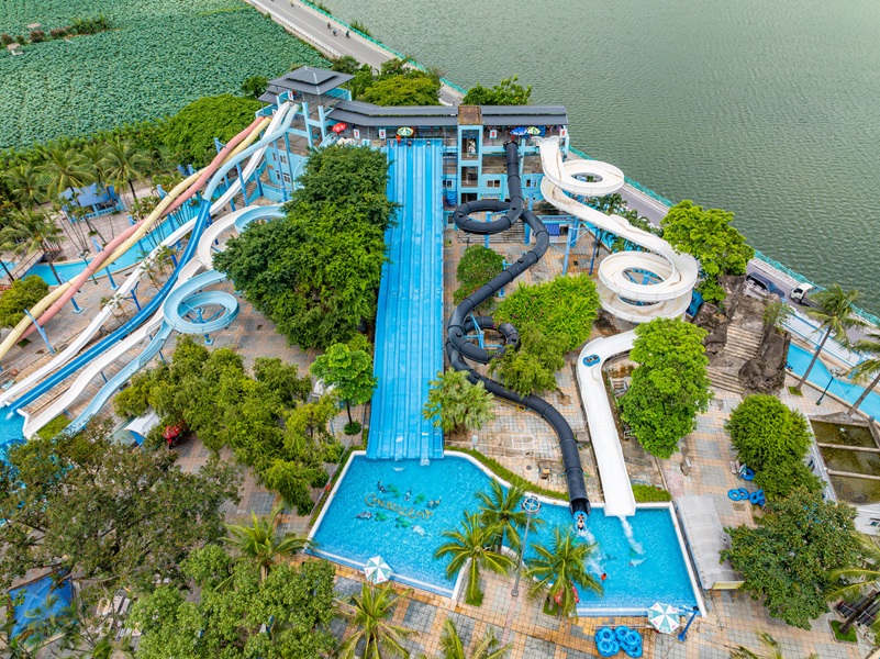 Đặc biệt, năm nay Công viên đã nâng cấp toàn bộ hệ thống bể bơi và sông Lười uốn lượn quanh khu vui chơi. Cảm giác thả mình trên phao, thảnh thơi ngắm bầu trời xanh thẳm và những tán cây rì rào trong gió, sẽ giúp du khách xua tan mọi bộn bề, tận hưởng sự thư giãn tuyệt đối bên Hồ Tây lộng gió.