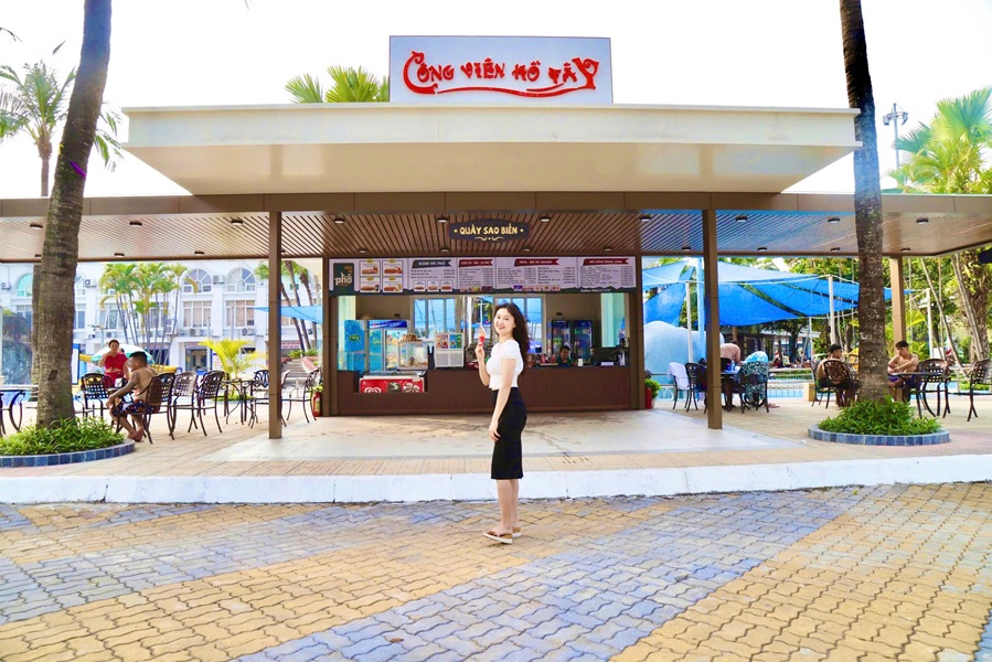 Hệ thống quầy ẩm thực cũng được đầu tư đồng bộ: các khu vực mái che mát mẻ được bố trí xung quanh bể tạo sóng, bể trẻ em và bể lâu đài nước, tạo cảm giác như đang ngồi bên bờ biển ngay giữa lòng Hà Nội. Nhà hàng cũng được nâng cấp theo phong cách hiện đại, phục vụ đa dạng các món ăn tươi ngon và đảm bảo vệ sinh an toàn thực phẩm, đặc biệt năm nay công viên phục vụ các món mới như: kem tươi, bánh mỳ Phố, xúc xích vòng đặc biệt và hàng loại combo hấp dẫn khác…, tất cả đều đã sẵn sàng làm hài lòng thực khách sau thời gian vui chơi sôi động.