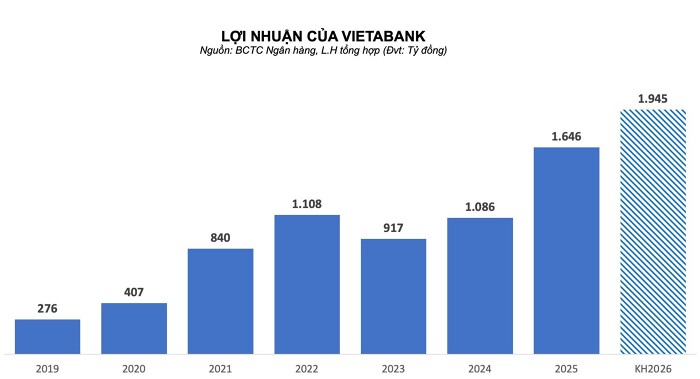 VietABank đặt mục tiêu lãi 2026 tăng 18% lên 1.945 tỷ đồng, trình kế hoạch tăng vốn 55% và mở rộng sang chứng khoán, bảo hiểm, fintech.