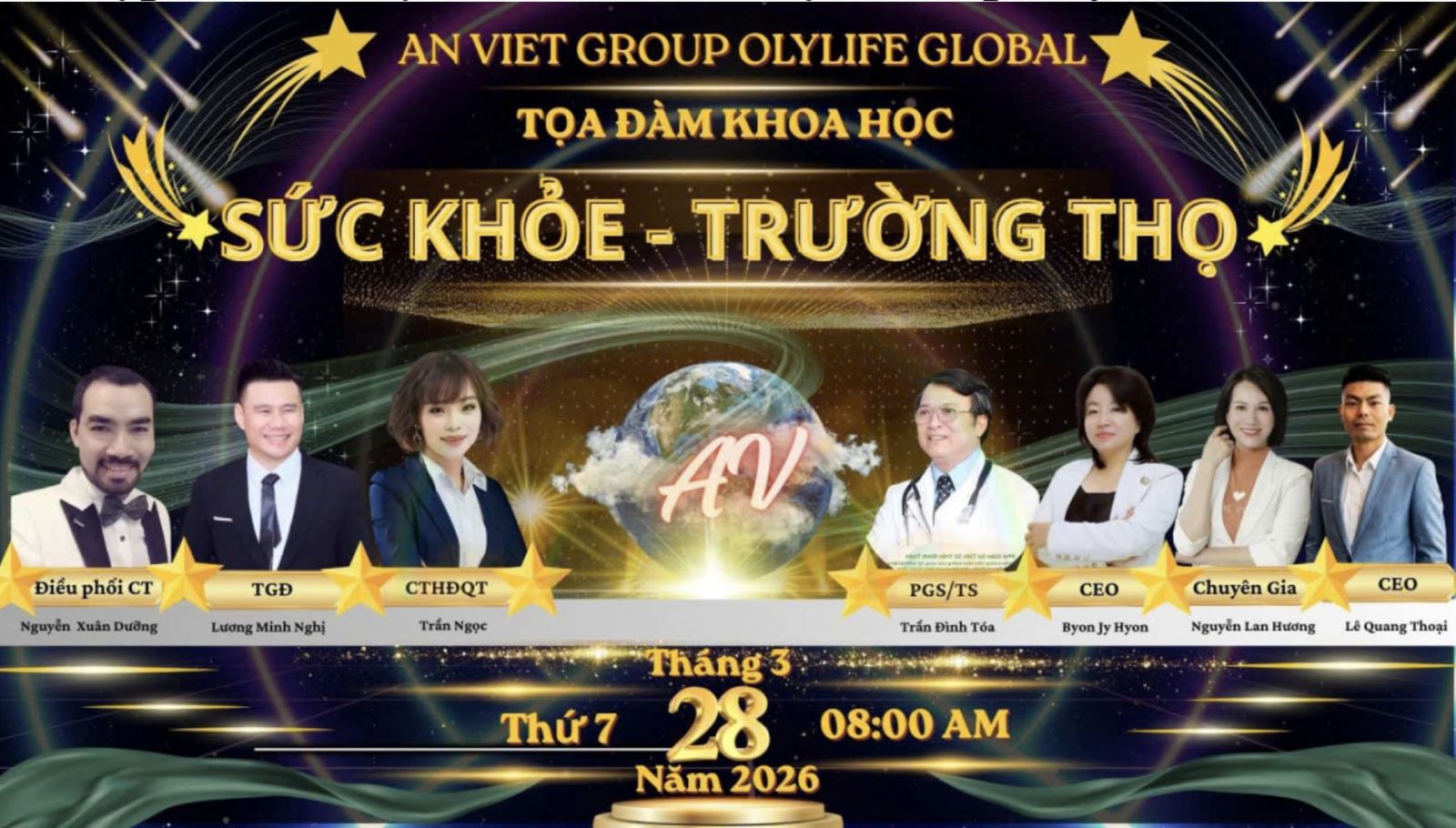 Ngày 28/3/2026, tại Hà Nội sẽ diễn ra tọa đàm khoa học “Sức khỏe & Trường thọ”, quy tụ các chuyên gia trong lĩnh vực y học, dinh dưỡng cùng cộng đồng doanh nhân và nhà đầu tư. Sự kiện đồng thời đánh dấu sự ra mắt của An Việt Group Olylife Global – doanh nghiệp định hướng phát triển hệ sinh thái trong lĩnh vực chăm sóc sức khỏe.